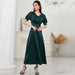 Vestido casual de cintura alta con cuello en V y mangas abullonadas en color liso