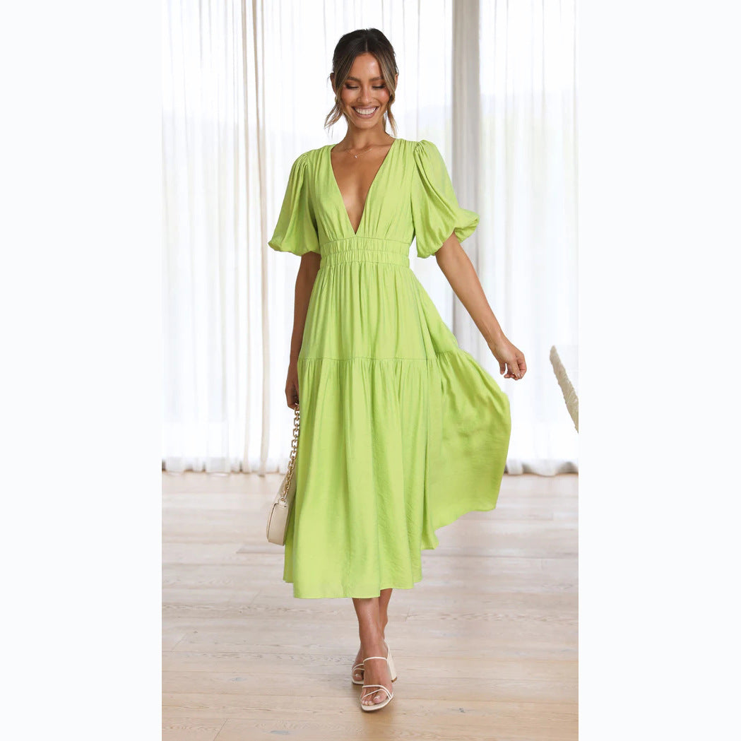 Vestido de longitud media con cintura ajustada y cuello en V de Casual Trends
