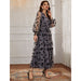Vestido largo informal de encaje con cuello en V, manga larga y cintura alta con estampado floral