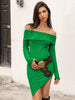 Jersey de punto verde ajustado con hombros descubiertos (sin cinturón)