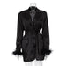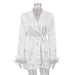 Vestido elegante de cuello alto con plumas de avestruz, manga larga, cintura ajustada, corte A