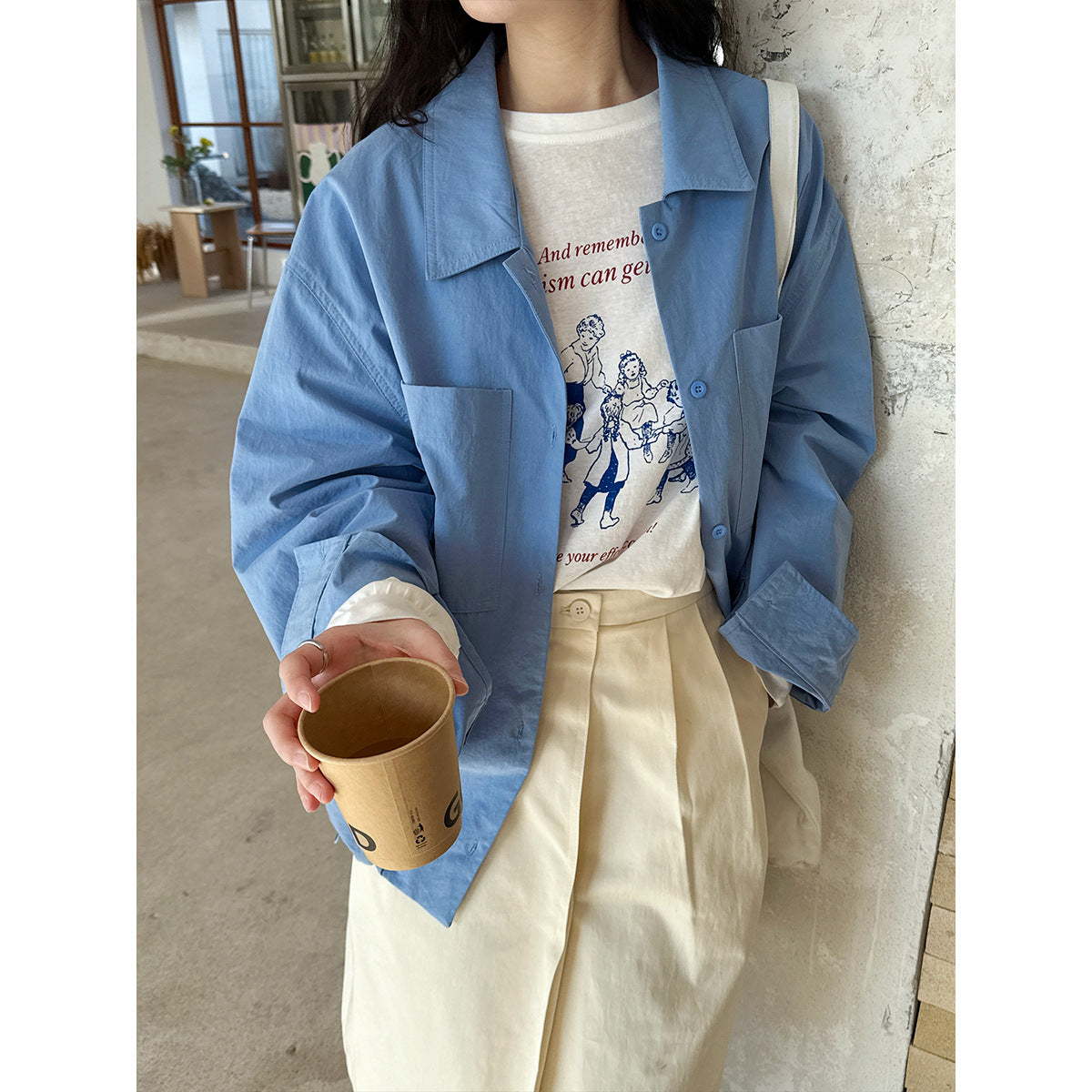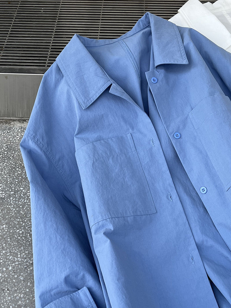 Camisa elegante informal con cuello polo y doble bolsillo, camisa de vestir con banda a juego.