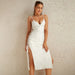 Vestido elegante de moda con escote en V plisado y cordones con abertura alta