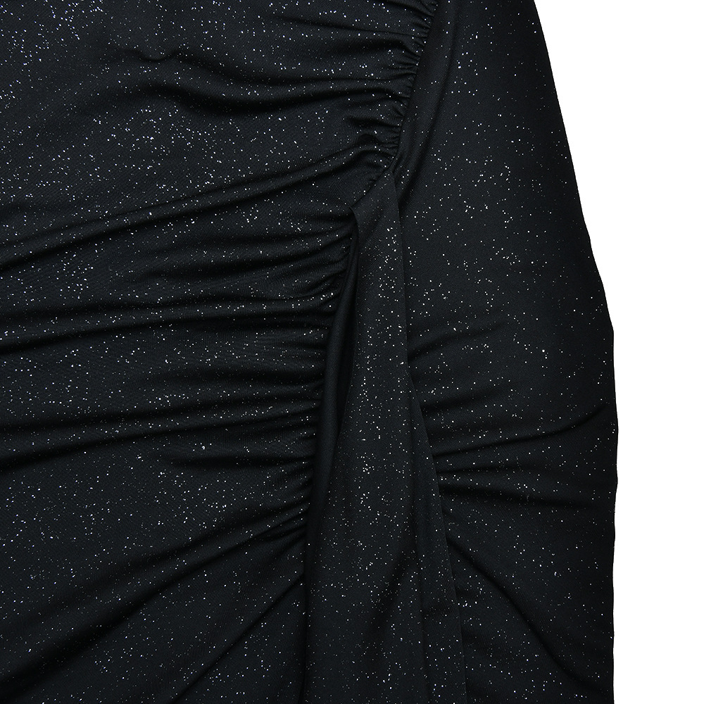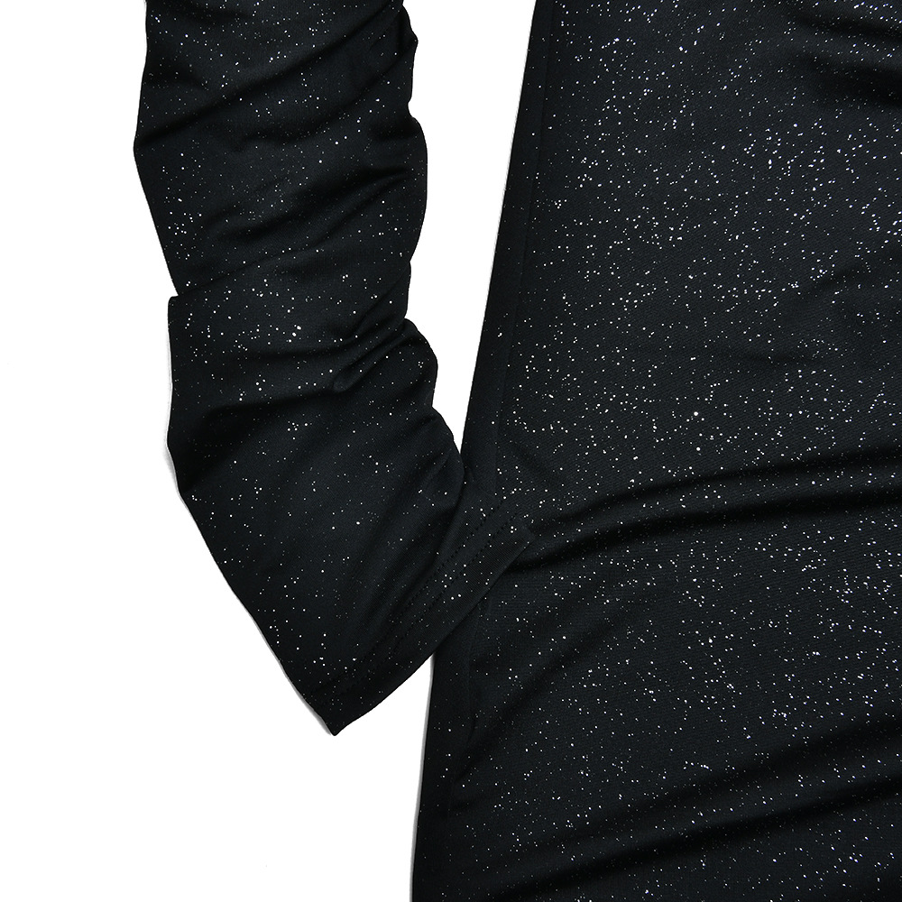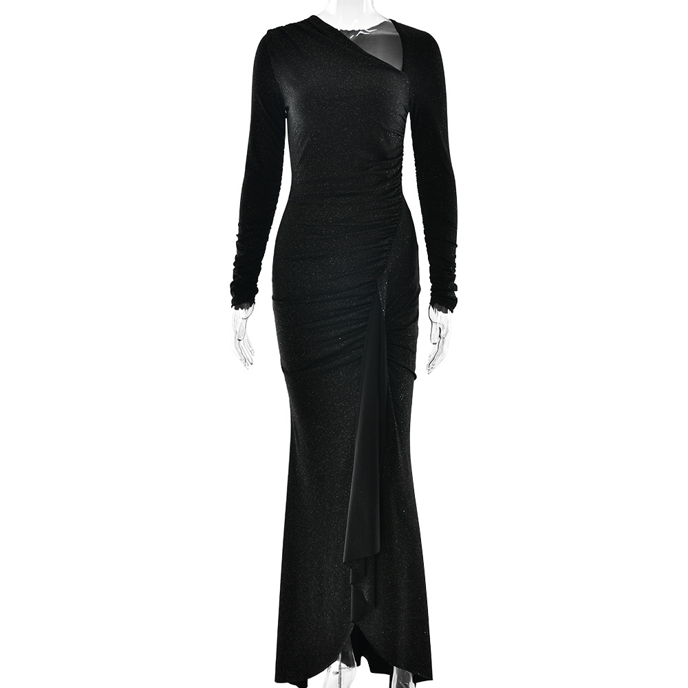 Vestido elegante ajustado con cuello diagonal y manga larga plisado de seda brillante