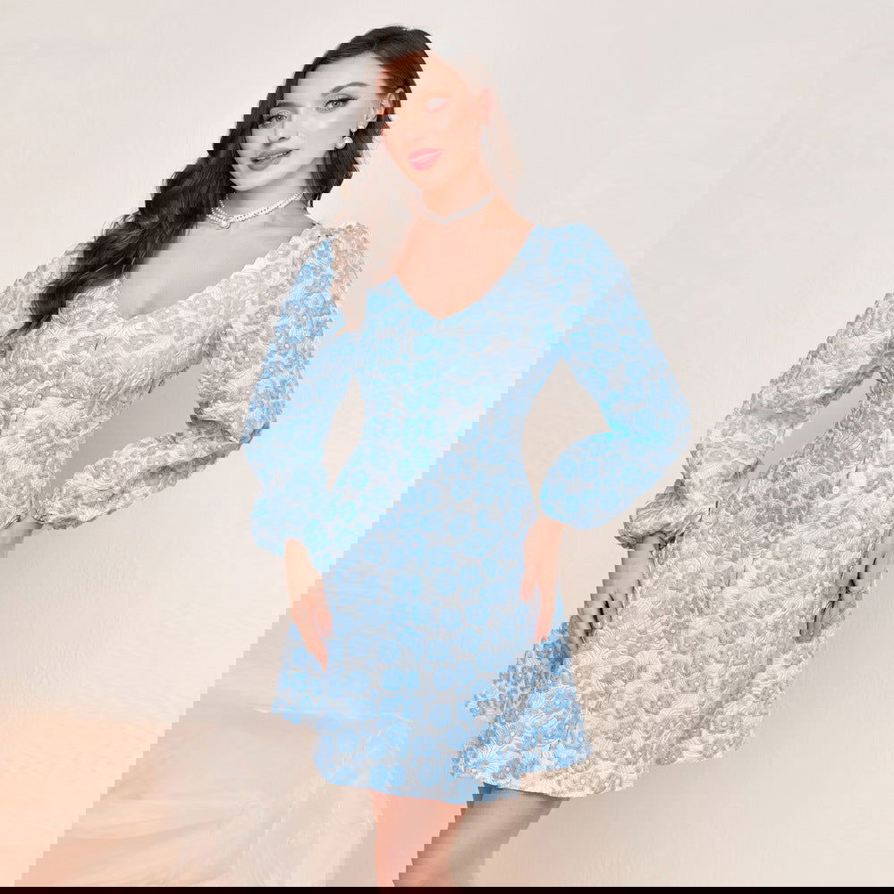 Vestido elegante de cintura alta con cuello en V