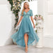 Vestido de noche con escote en V profundo, manga corta, lentejuelas, irregular, asimétrico, malla multicapa, para dama de honor y fiesta