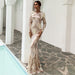 Vestido largo de noche con costuras de trapeador y apliques para damas.