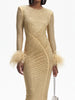 Feathers Rhinestone Folds Midi Dress