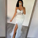 Feathers Spaghetti Straps Side Slit Prom Dress