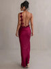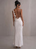 Floral Draped Open Back Spaghetti Strap Maxi Dress