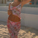 Vestido playero floral vaporoso con tirantes y falda de encaje con lazo dividido