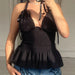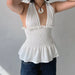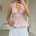 Floral Print/Swiss Dot Tie-Up Halter Backless Tops