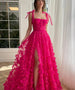 Flower Appliques Prom Dresses Tulle Side Split