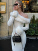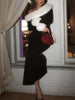 Fluffy Long Sleeve Off-Shoulder Patchwork Dress