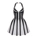 Vestido francés dulce picante con cuello halter, espalda descubierta, tirantes finos, tejido a rayas, vendaje jacquard