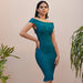 Vestido de fiesta ajustado de una pieza con hombros descubiertos, manga corta, para anfitriona de cena, color verde