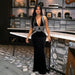 Vestido halter sin espalda, sin mangas, para fiesta y noche