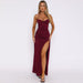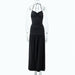 Vestido largo ajustado con cuello halter, espalda descubierta y abertura lateral en la cadera