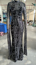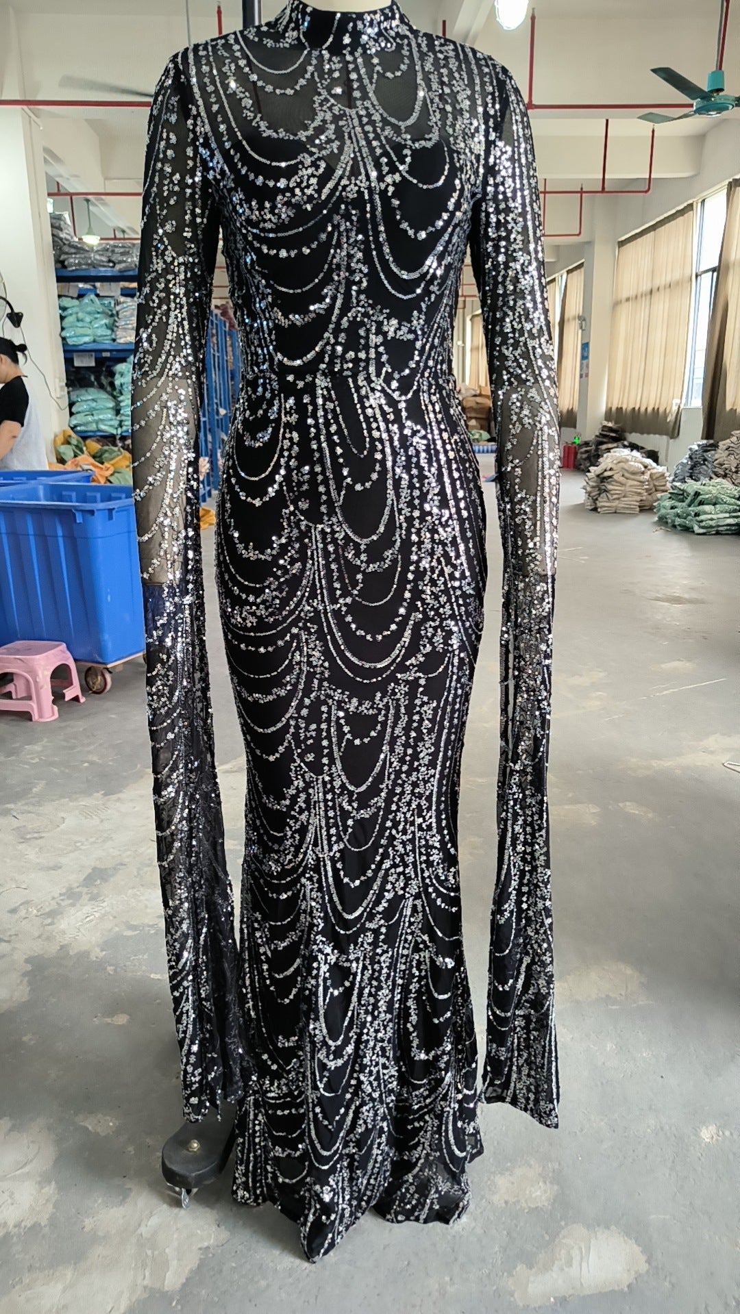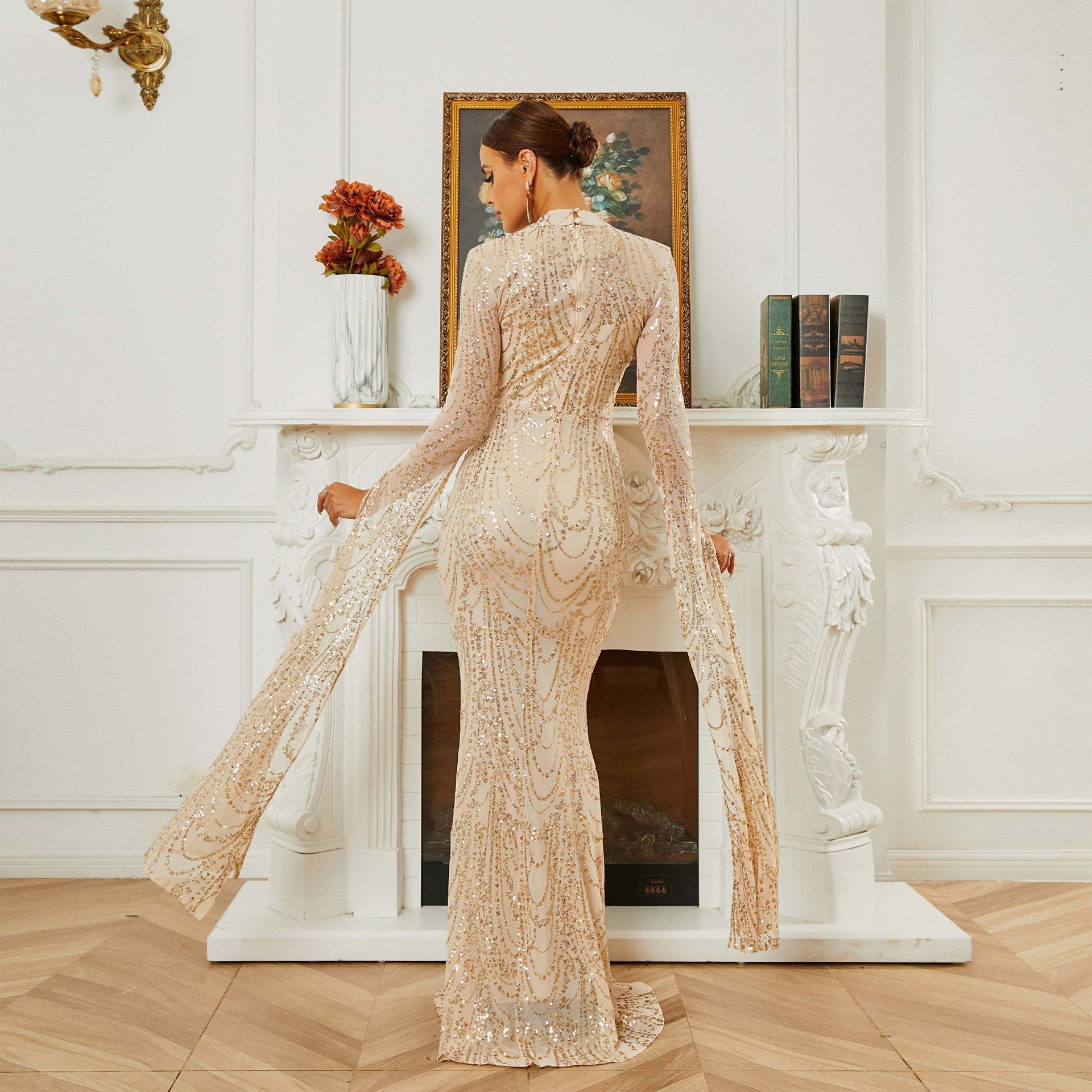 Vestido de cóctel de noche de alta gama con lentejuelas, manga larga y cuello redondo, vestido de dama de honor