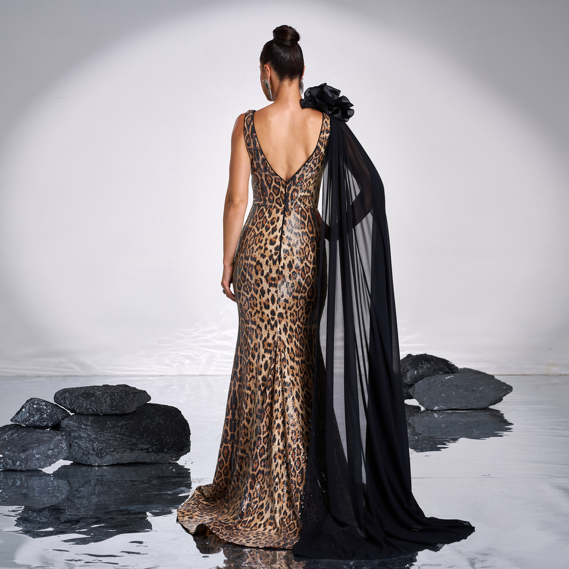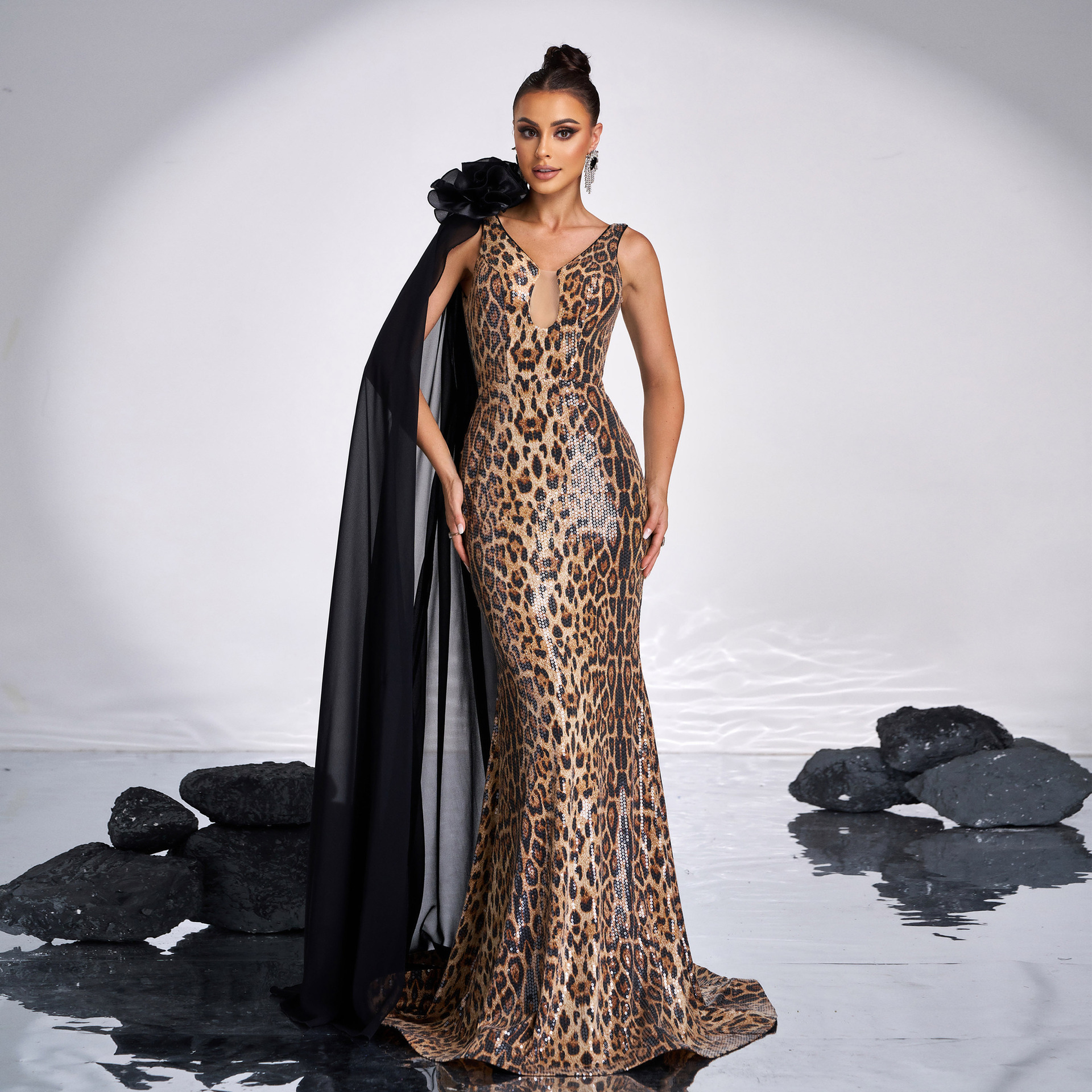 Vestido de noche de alta gama, sin mangas, elegante, con escote en V, largo, con lentejuelas y cola de pez, vestido de dama de honor
