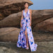 Vestido de noche elegante de alta gama con escote en V y aberturas, largo y amplio para cóctel y dama de honor.