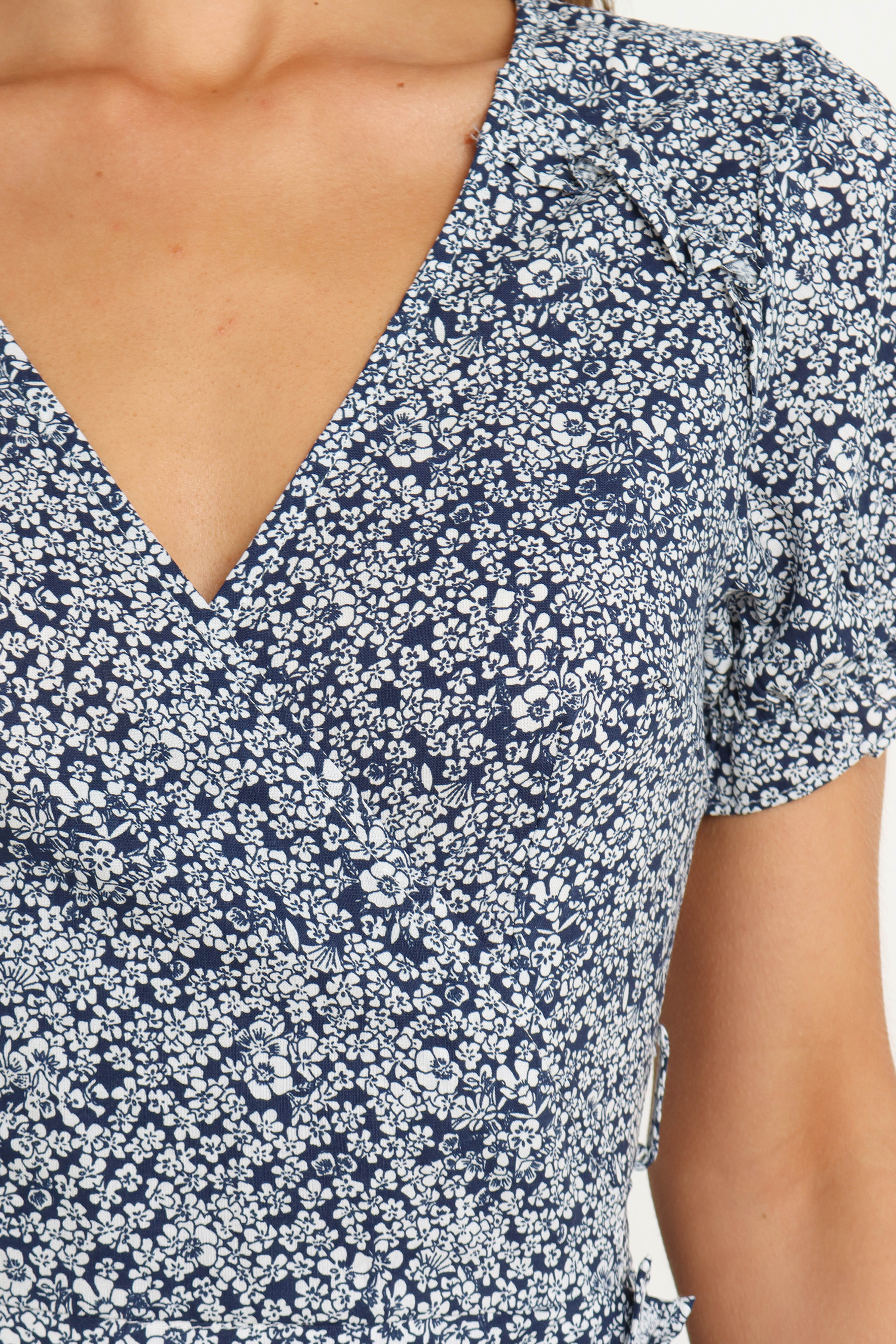 Vestido de tirantes florales con volantes, cuello en V y manga corta para vacaciones