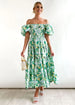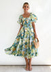 Vestido ajustado de fiesta con espalda descubierta y vuelo amplio, cuello descubierto, estampado de verano