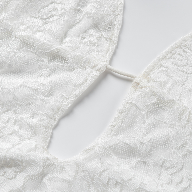 Elemento: Volante. Lazo. Encaje/Tul/Red. Abertura. Espalda descubierta.