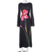 Vestido elegante, intelectual, con cuello redondo, manga larga, espalda ahuecada, corte y estampado.