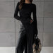 Abertura asimétrica irregular, color sólido, cuello redondo, manga larga