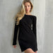 Camisón de punto con rayas hundidas, de manga larga, sin espalda, sencillo, cómodo e informal para estar en casa