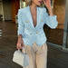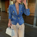 Lapel Neck Solid Denim Jacket Double Breasted Blazer