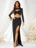 Vestido largo de manga larga con abertura alta y textura ligera, ajustado y favorecedor.