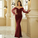 Vestido de cóctel de noche elegante de manga larga con costuras de malla larga y cuello alto para dama de honor