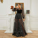 Vestido de noche de dama de honor con cuello redondo, manga larga y lentejuelas de gasa