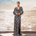 Vestido de noche de cóctel con escote en V y manga larga con lentejuelas y abertura en la cadera para dama de honor