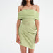 Vestido tubo ajustado transparente con cuello desbocado y costuras de malla