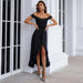 Vestido de noche de fiesta sin mangas de color liso con abertura de longitud media y hombros descubiertos para playa
