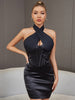 Vestido de fiesta de noche sin espalda con cuello halter y aberturas en la espalda