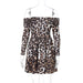 Vestido plisado corto elegante con cuello alto y hombros descubiertos y manga larga