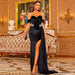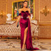 Vestido de noche elegante con escote desbocado, pecho envuelto, elegante, con cadera envuelta, elegante, para dama, con fregona pequeña dividida para