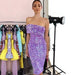 Vestido morado con hombros descubiertos y top de tubo para cóctel, fiesta de celebridades, vestido de noche