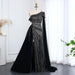 One-Shoulder Cape Sleeves Overskirt Party Gown