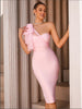 Vestido ajustado de cola de pez de malla con un solo hombro para boda, fiesta, cóctel, vestido pequeño