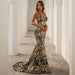 Fiesta Formal Cóctel Tirantes Estampado Leopardo Dividido Fiesta Graduación Noche Dorado