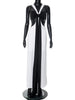 Patchwork Contrast Hollow Out Split Long Dress