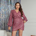 Vestido de talla grande con cuentas, cintura controlada, escote en V, encaje, mangas farol