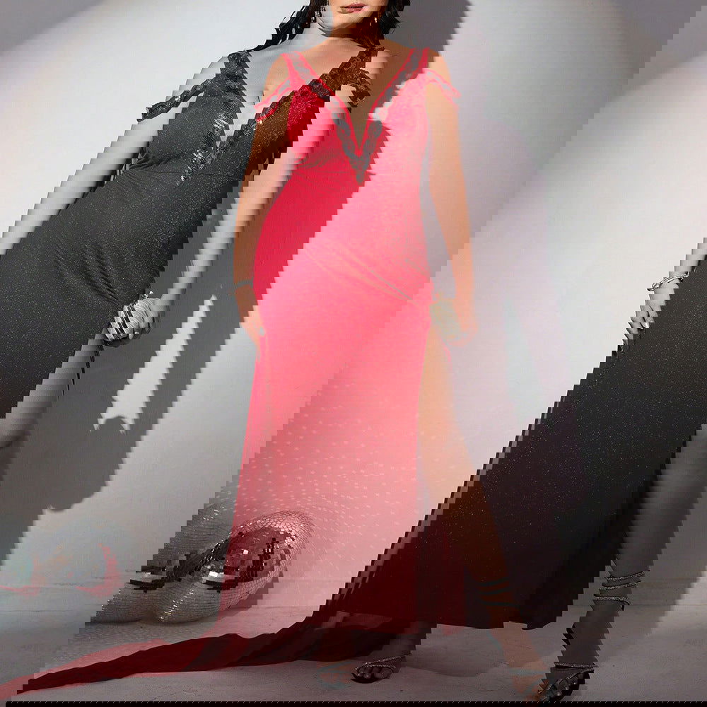 Vestido de talla grande con escote en V profundo, corte entallado, cola pequeña, vestido halter