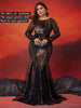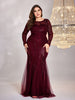 Vestido de talla grande, manga larga, cuello redondo, corte entallado, falda de cola de pez, vestido de dama de honor para cóctel de noche para brindar elegante
