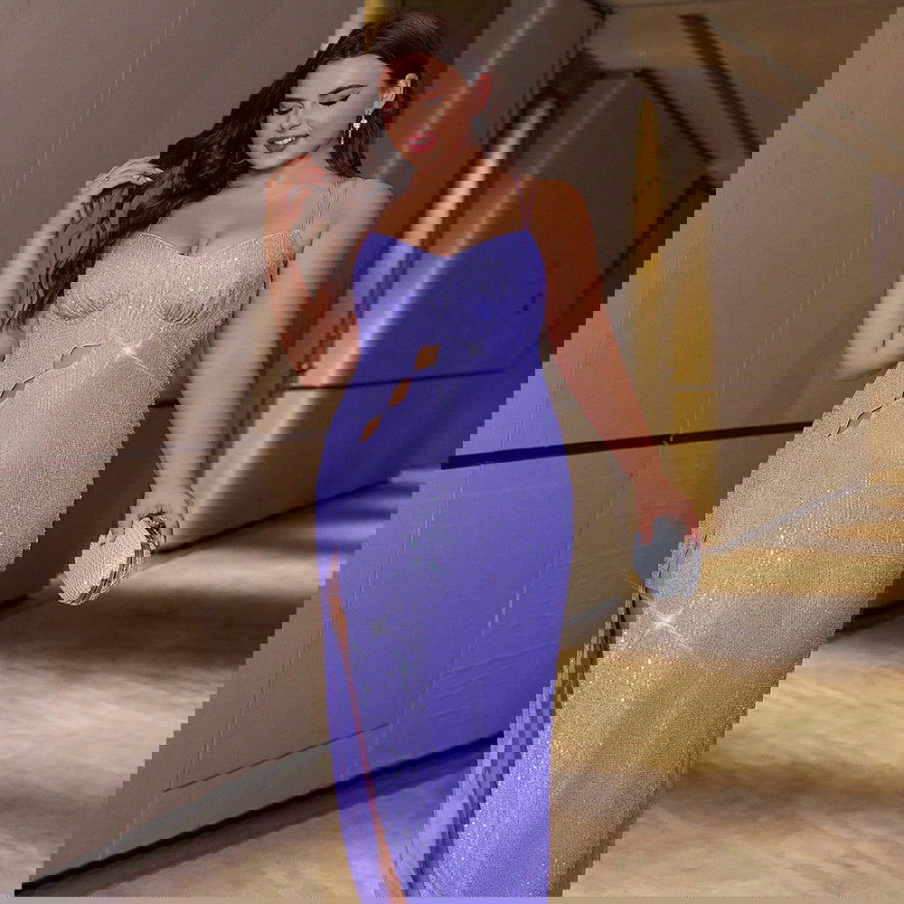 Vestido de fiesta de talla grande con lentejuelas y tirantes largos